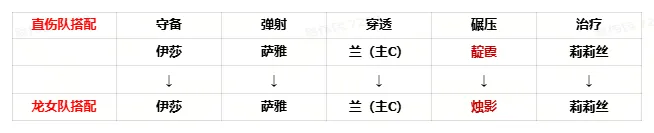 琳达→兰/弗雷尔——琳达替换成兰或者弗雷尔担任队伍副C,补足少量伤害。因为是副C,兰和弗雷尔哪个本体多优先考虑那个。不需要花费过多资源去获取本体升星。